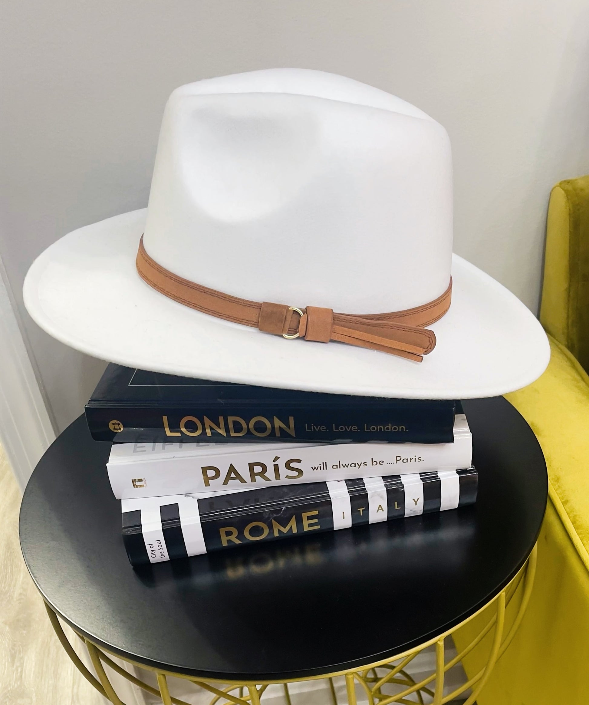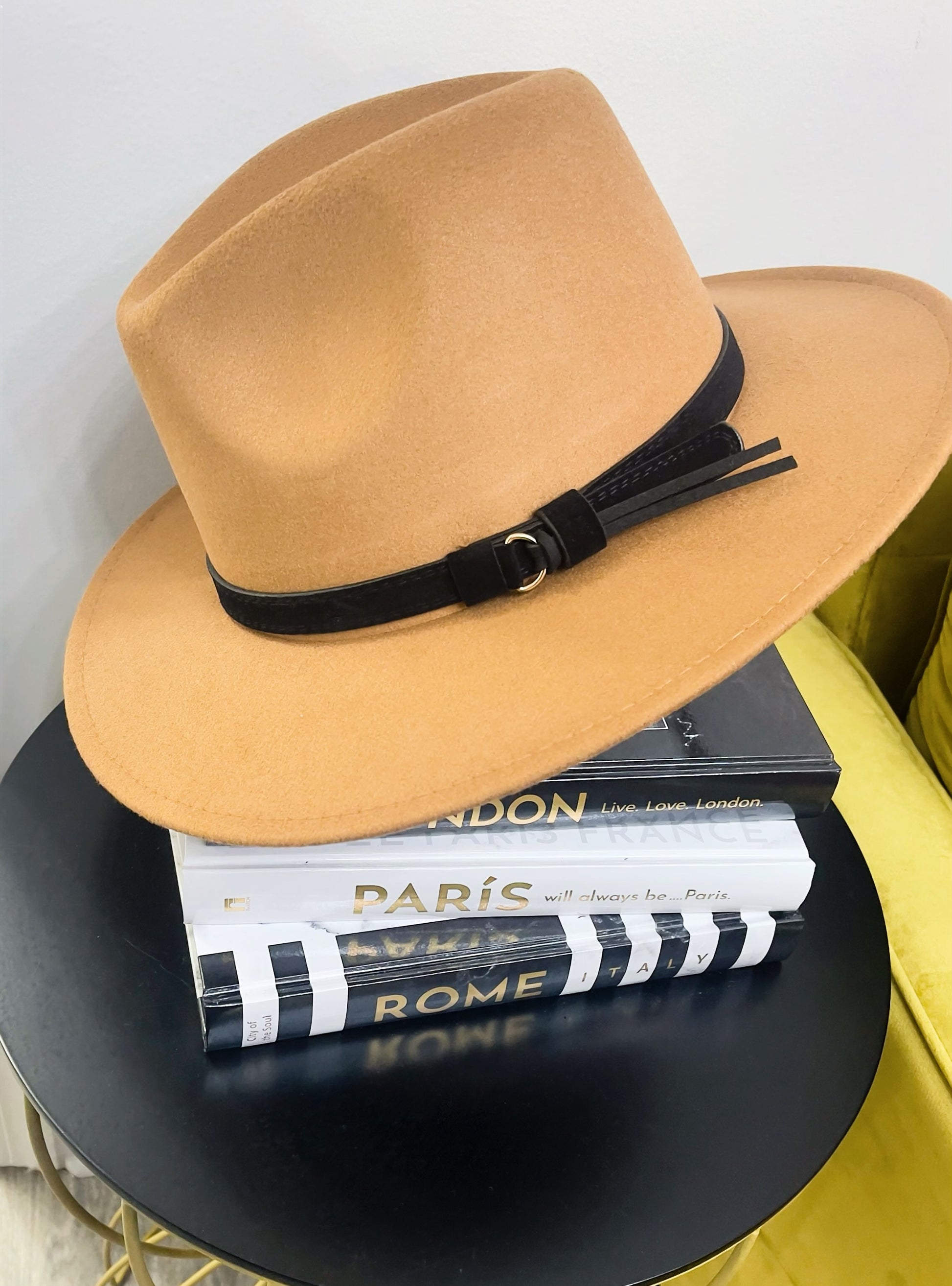 Hats feature a wide brim, band detailing with metal loop, and come shipped with love and include a protective plastic casing on top to protect shape. Hat slightly too big? Hats feature an adjustable sizing ribbon on the inside to tighten to size your head.